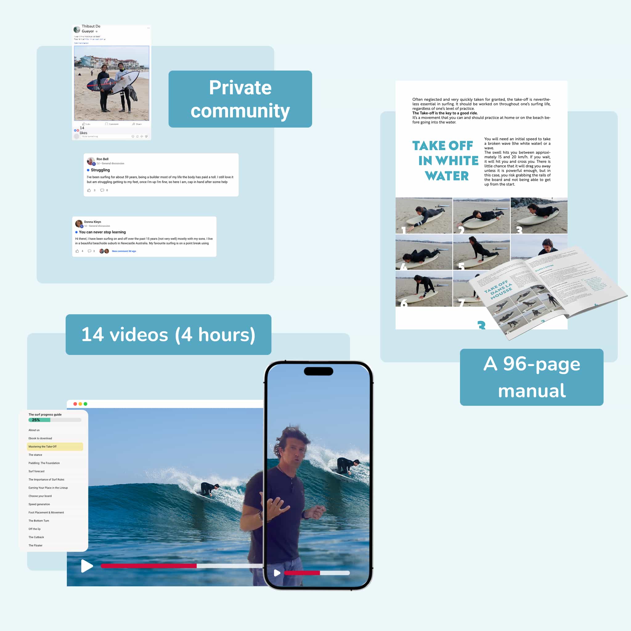 Hello everyone—beginners, intermediates and even pros. The book is super clear, very easy to understand and the videos add huge value to surf comprehension. The coaches are truly top-notch 🤙🏼 I learned a lot from this book. Great job, guys, and thank you 🙏. In short, I recommend the book to everyone, whatever your level 🤙🏼🌊🏄♂️