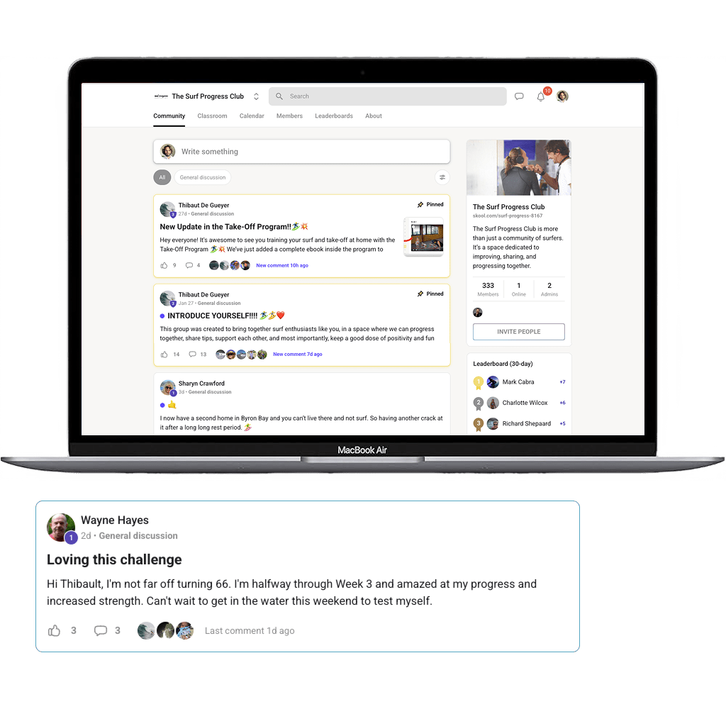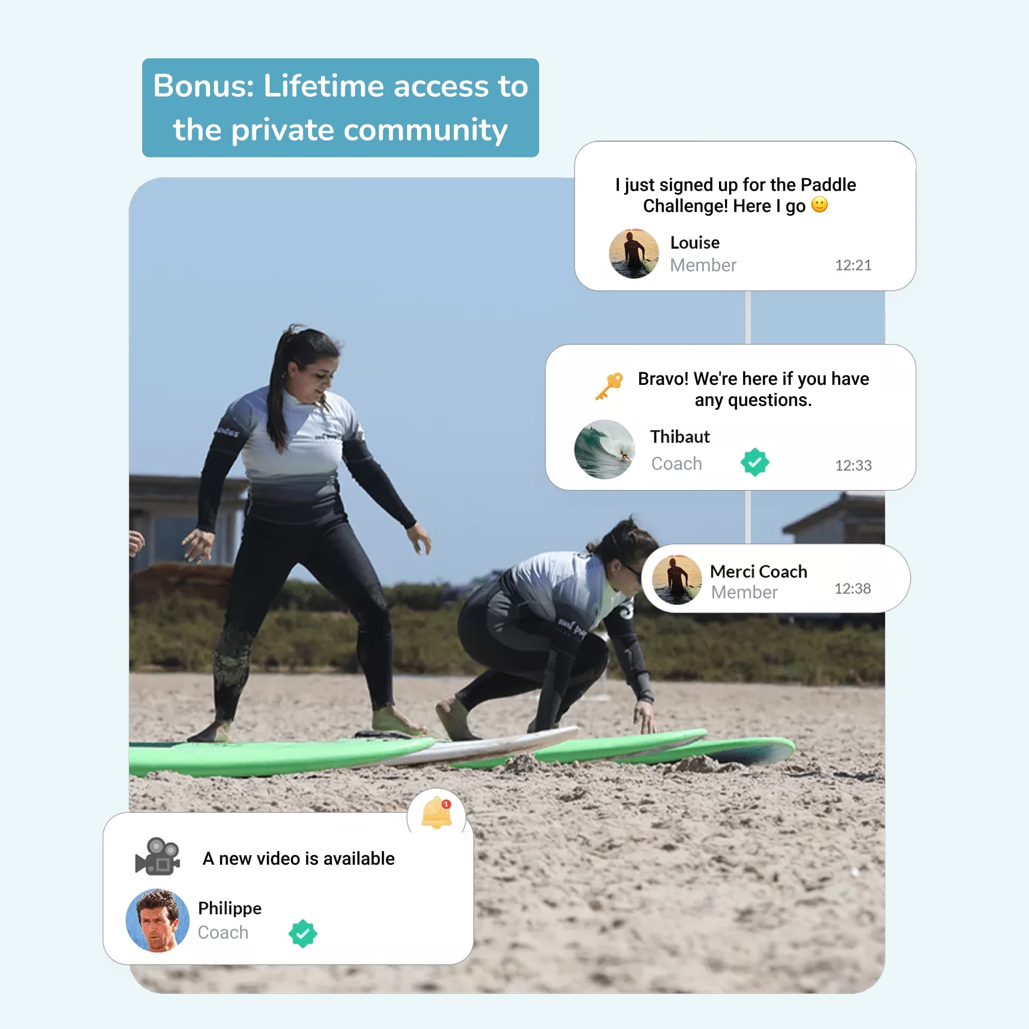 ✓ FREE: lifetime access to the private surfers’ community ($14.90/month)